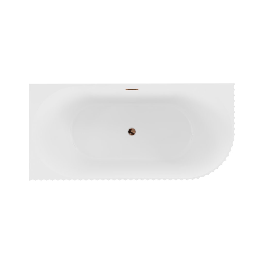 Mexen Gia, volně stojící rohová vana, drážkovaná, levá, 150 x 75 cm, bílá matná, růžové zlato, 52701507501L-60