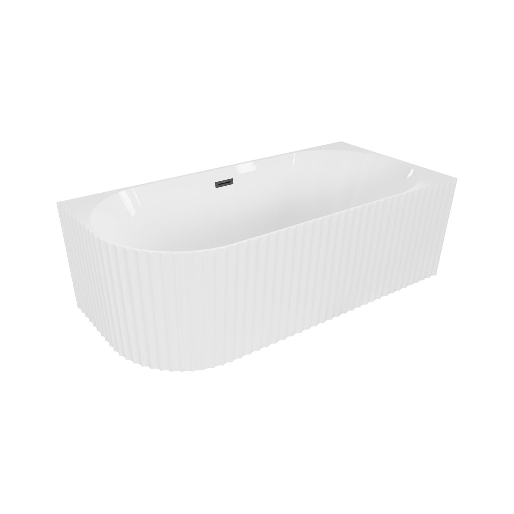 Mexen Gia, volně stojící rohová vana, drážkovaná, pravá, 150 x 75 cm, bílá lesklá, černá matná, 52701507500P-70
