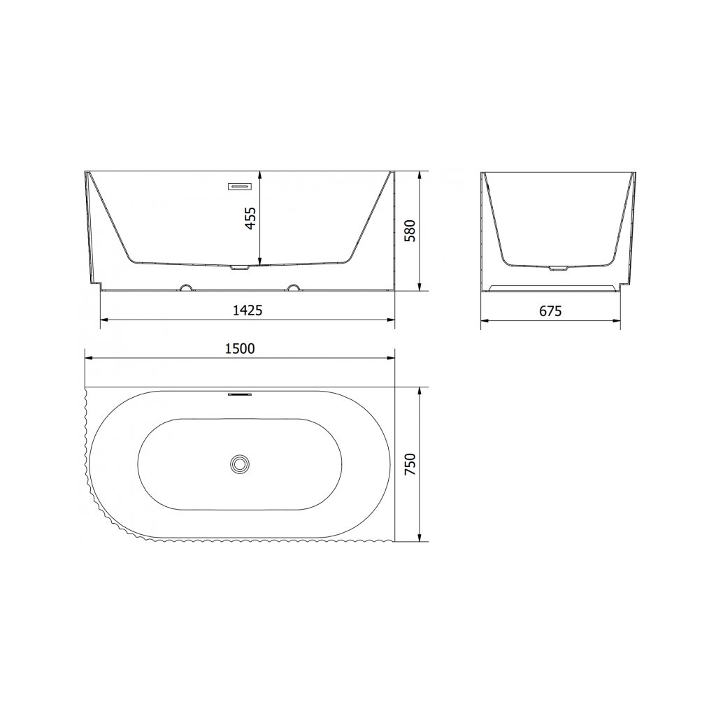 Mexen Gia, volně stojící rohová vana, drážkovaná, pravá, 150 x 75 cm, bílá matná, černá matná, 52701507501P-70