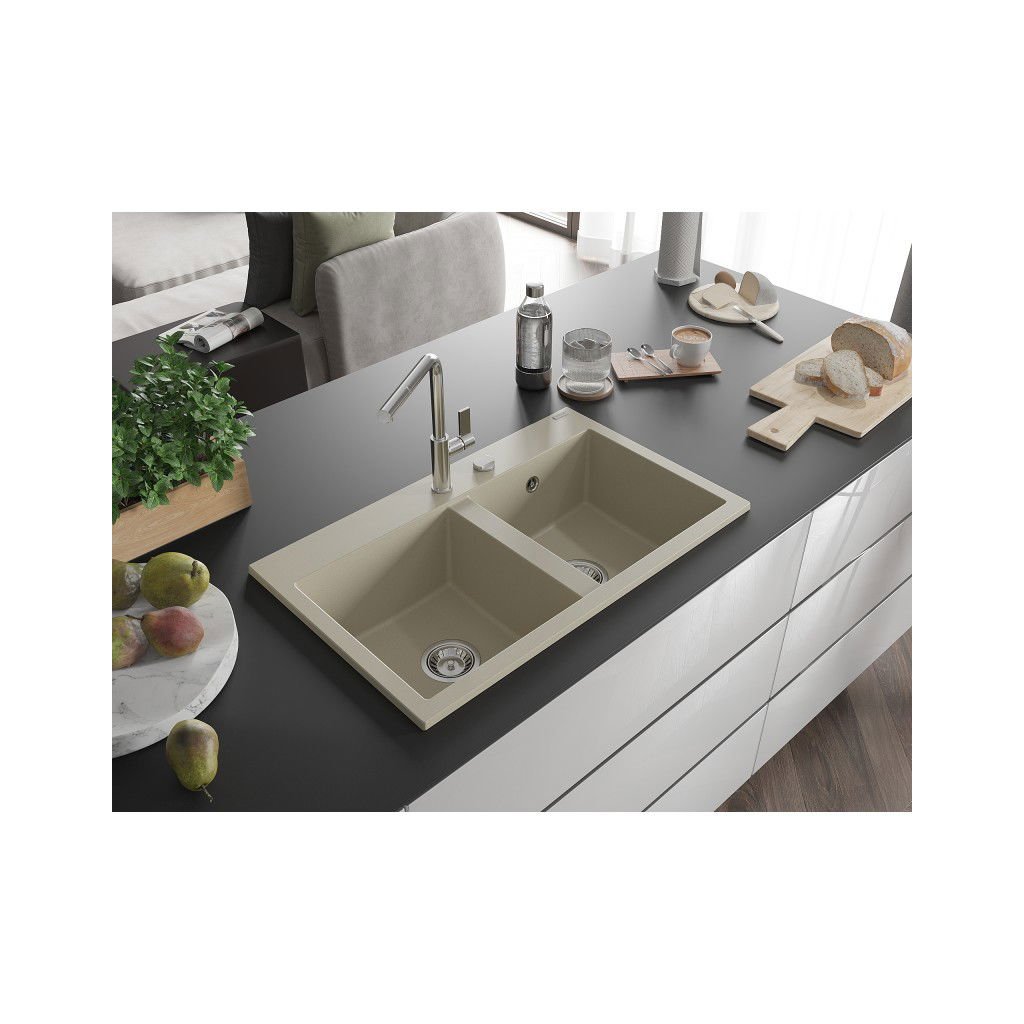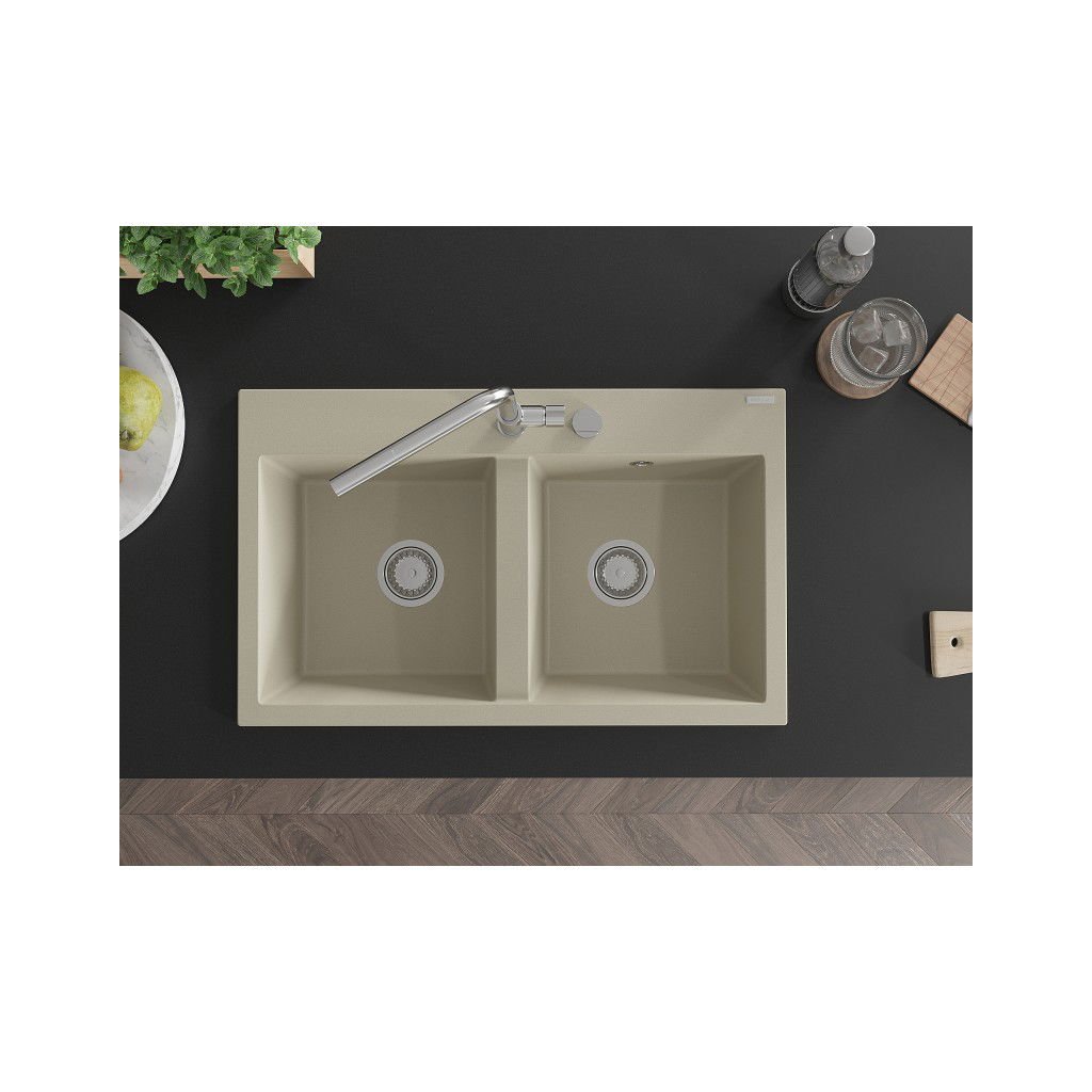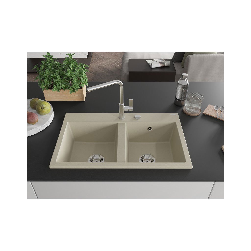 Mexen Hektor, 2-komorový granitový dřez 800x480x205 mm, béžová, chromový sifon, 6521802000-69