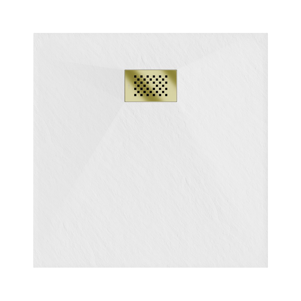 Mexen Hugo, čtvercová sprchová vanička SMC 70 x 70 cm, bílá, zlatá krytka, 42107070-G
