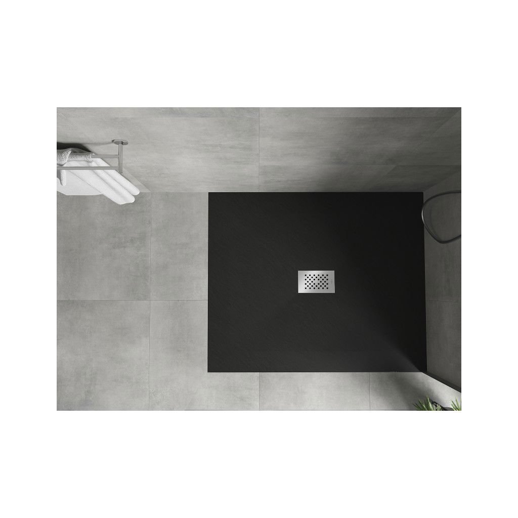 Mexen Hugo, obdélníková sprchová vanička SMC 130 x 100 cm, černá, ocelová krytka, 42701013-X