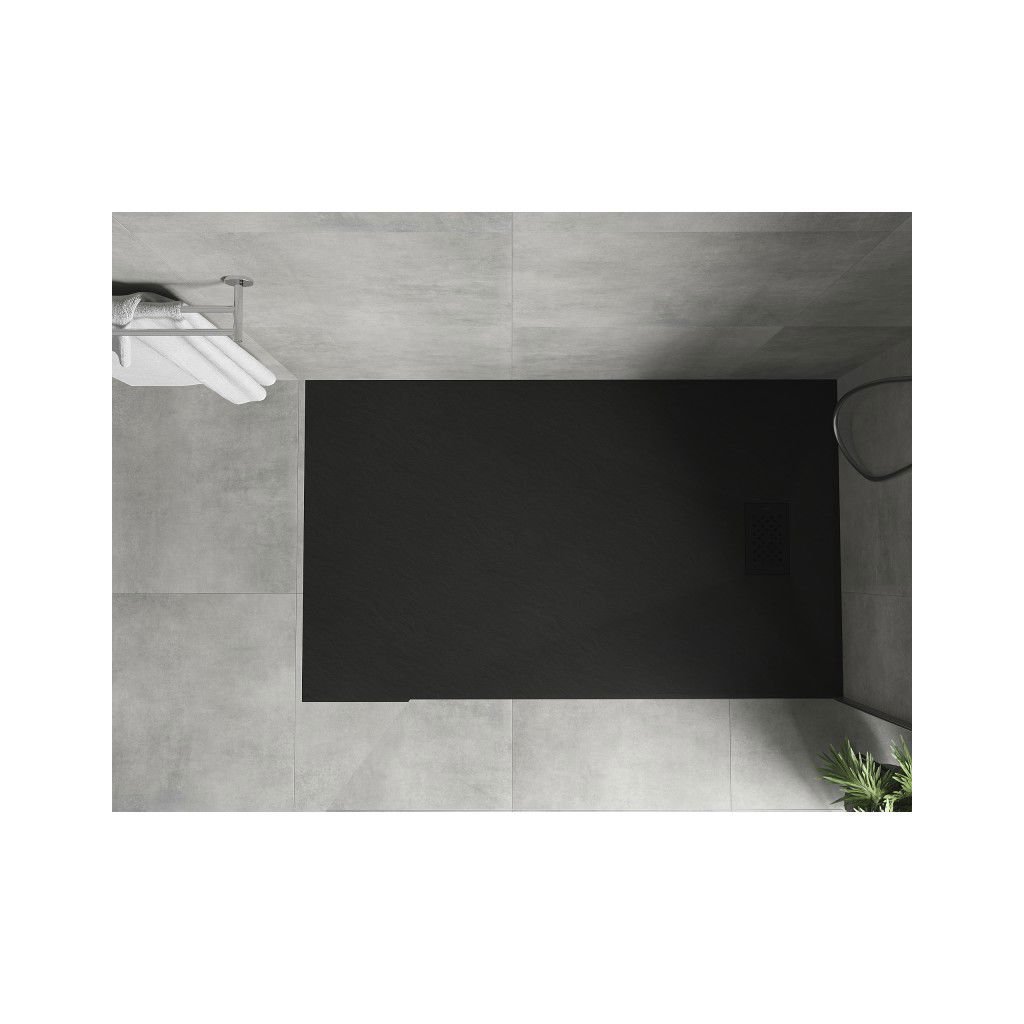 Mexen Hugo, obdélníková sprchová vanička SMC 140 x 80 cm, černá, černá krytka, 42708014-B