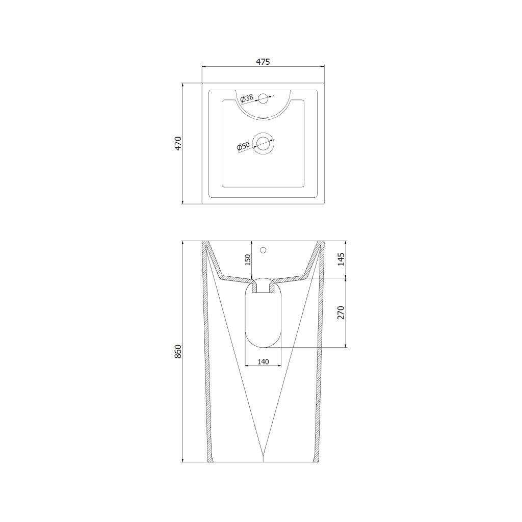 Mexen Ida, volně stojící umyvadlo 46x46x82 cm, černá matná, 26114670