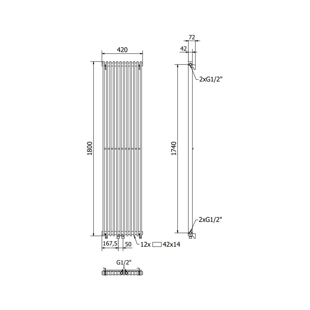 - 4xG 1/2" nahoru a dolů vpravo nebo vlevo - Možnost montáže topné tyče