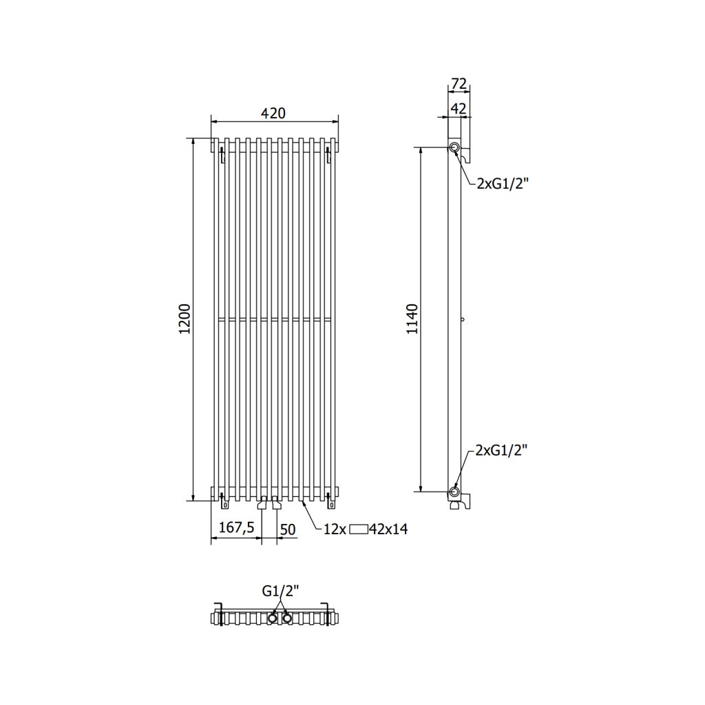 - Rozteče mezi připojeními: 42 cm (boční) nebo 5 cm (středové)