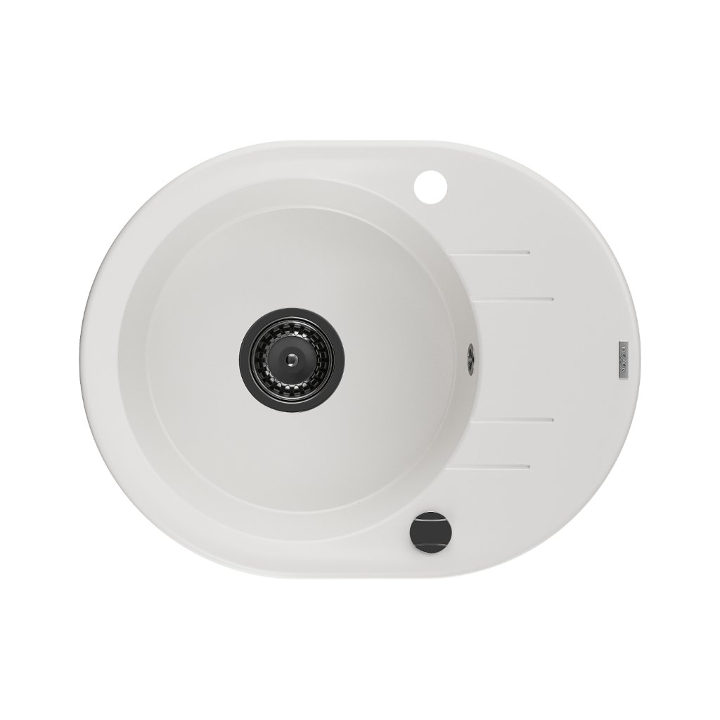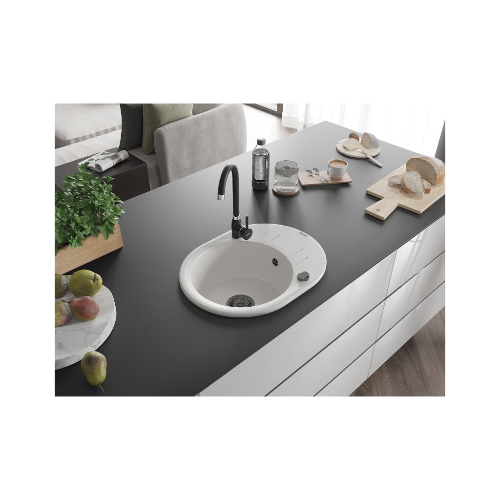 Mexen Kevin, granitový dřez 586x458x190 mm, 1-komorový, bílá s černým sifonem, 6517581005-20-B