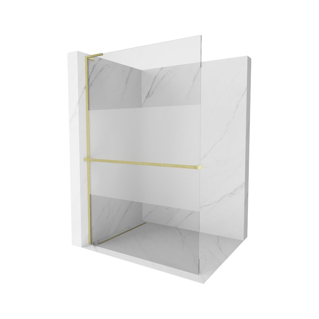 Mexen Kioto+ L, sprchová zástěna Walk-In s poličkou a věšákem 100 x 200 cm, 8mm čiré sklo-námraza, zlatý matný profil, 800-100-123-55-35