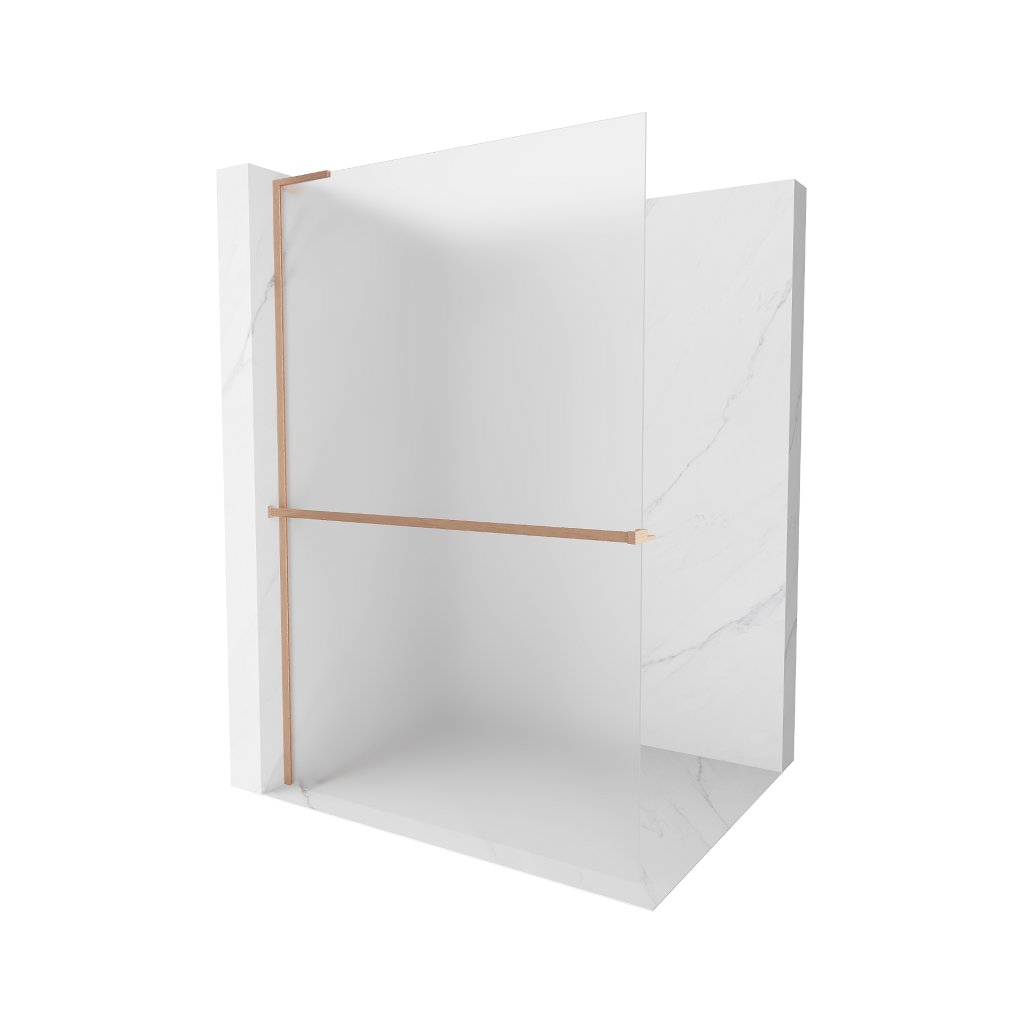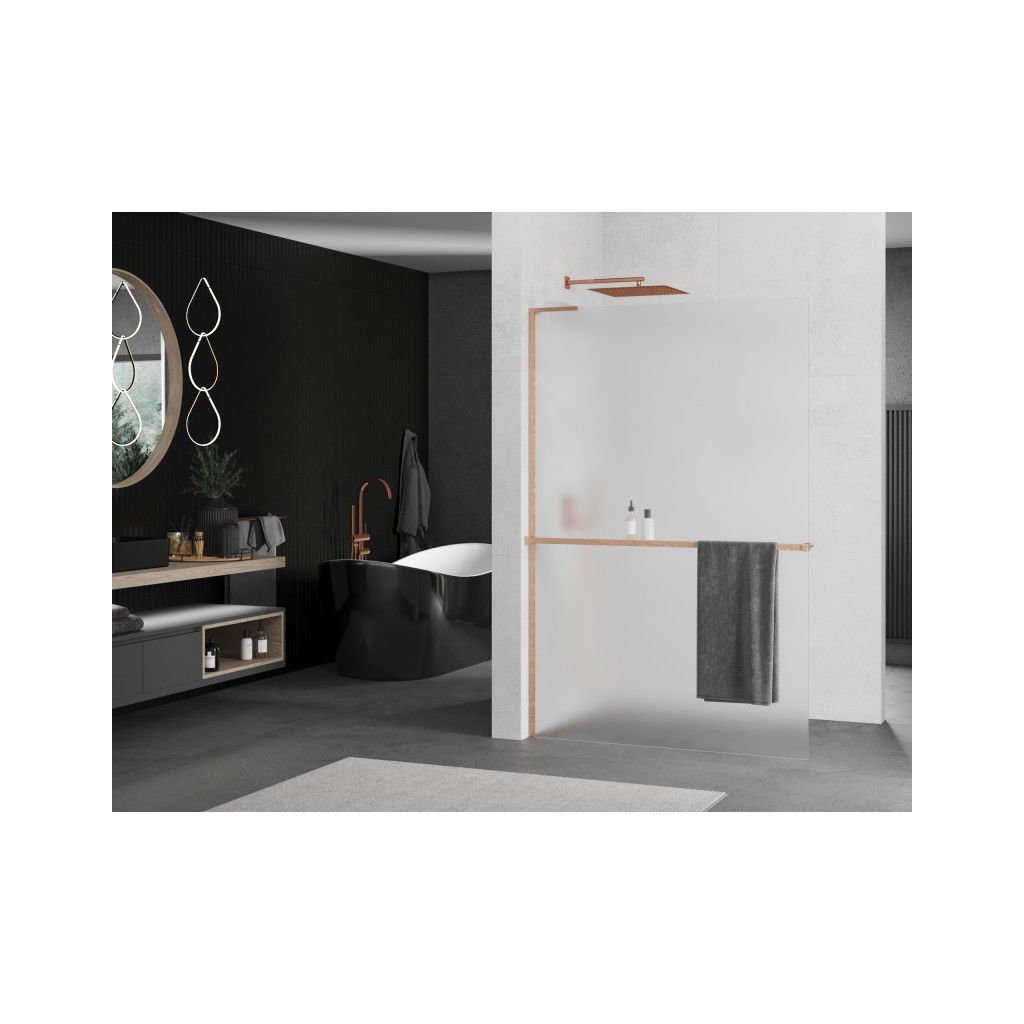 Mexen Kioto+ L, sprchová zástěna Walk-In s poličkou a věšákem 100 x 200 cm, 8mm sklo námraza, měděný matný profil, 800-100-123-65-30