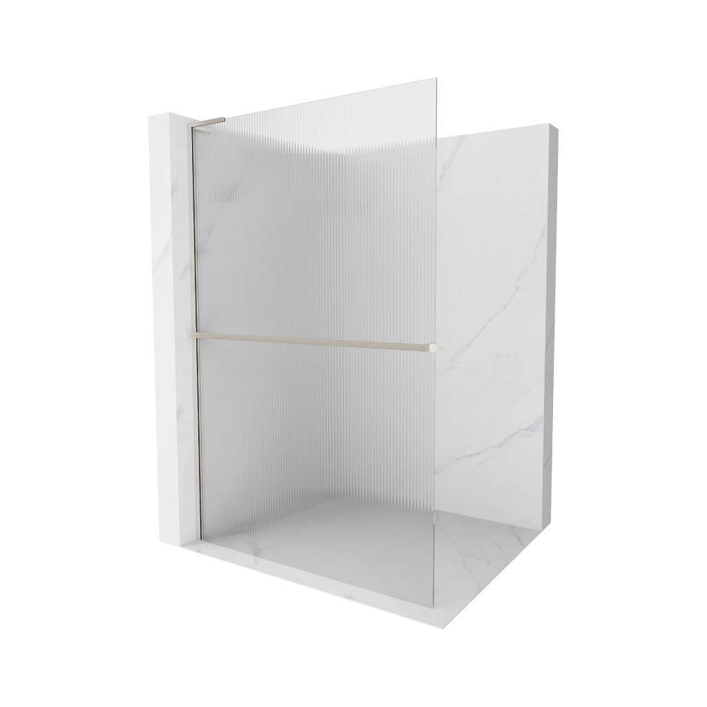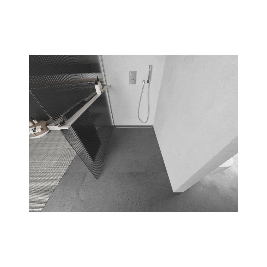 Mexen Kioto+ L, sprchová zástěna Walk-In s poličkou a věšákem 100 x 200 cm, 8mm sklo s žebrovým vzorem, broušená ocel profil, 800-100-123-97-09