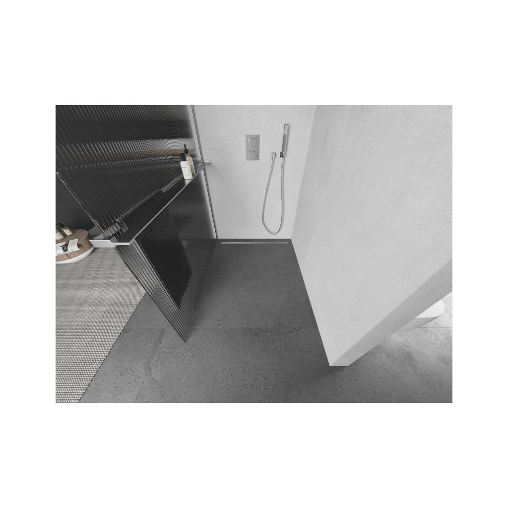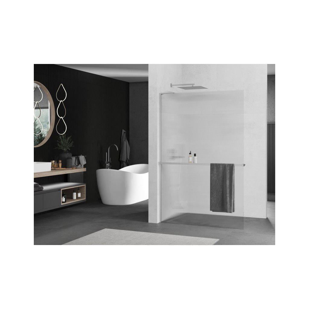 Mexen Kioto+ L, sprchová zástěna Walk-In s poličkou a věšákem 100 x 200 cm, 8mm sklo s žebrovým vzorem, chromový profil, 800-100-123-01-09