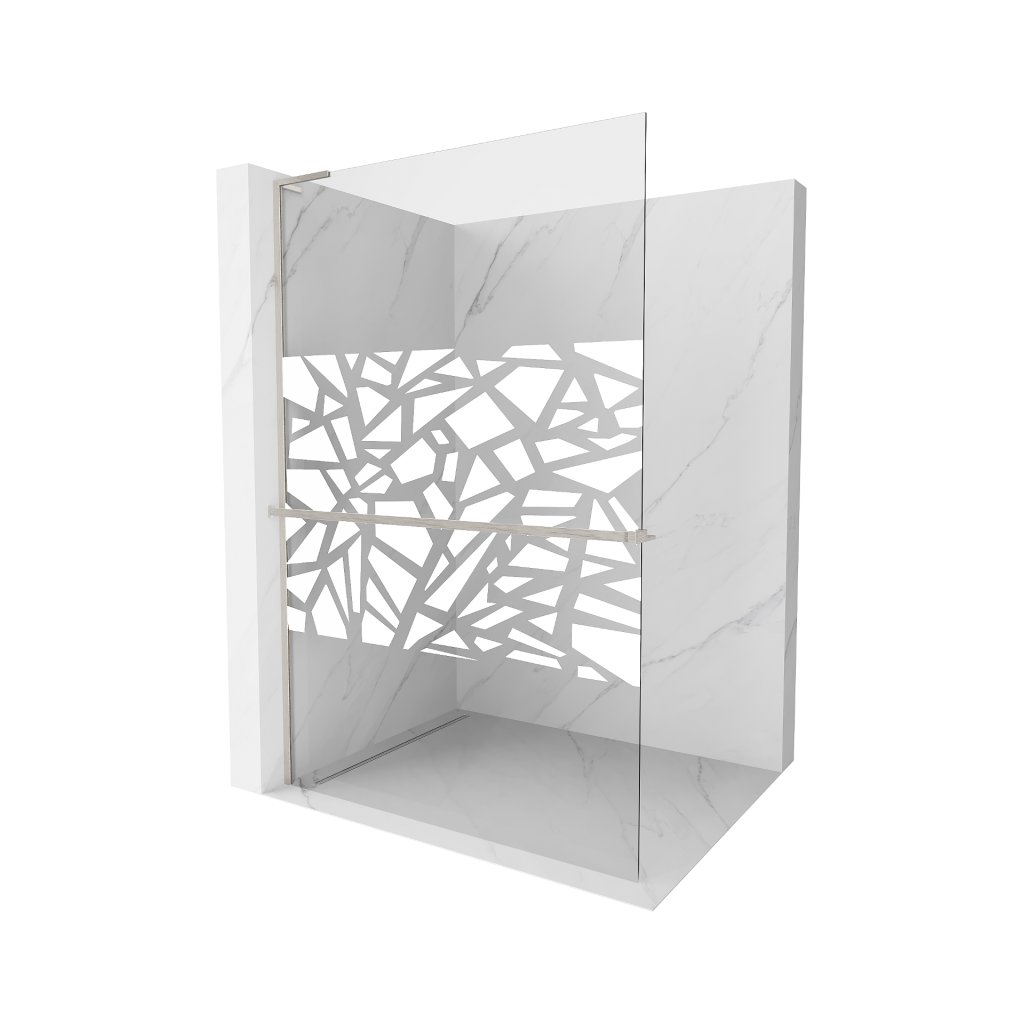 Mexen Kioto+ L, sprchová zástěna Walk-In s poličkou a věšákem 110 x 200 cm, 8mm čiré sklo bílý vzor, broušená ocel profil, 800-110-123-97-85