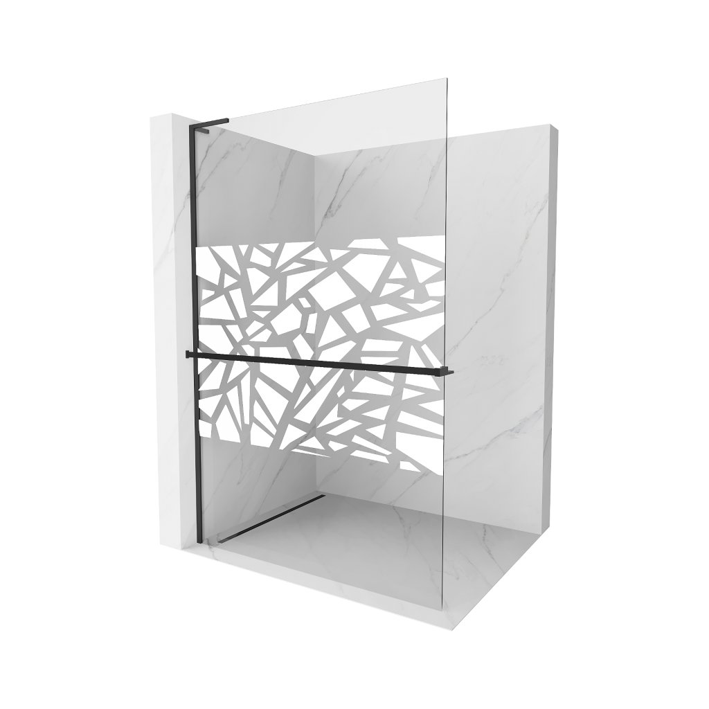 Mexen Kioto+ L, sprchová zástěna Walk-In s poličkou a věšákem 110 x 200 cm, 8mm čiré sklo bílý vzor, černý profil, 800-110-123-70-85