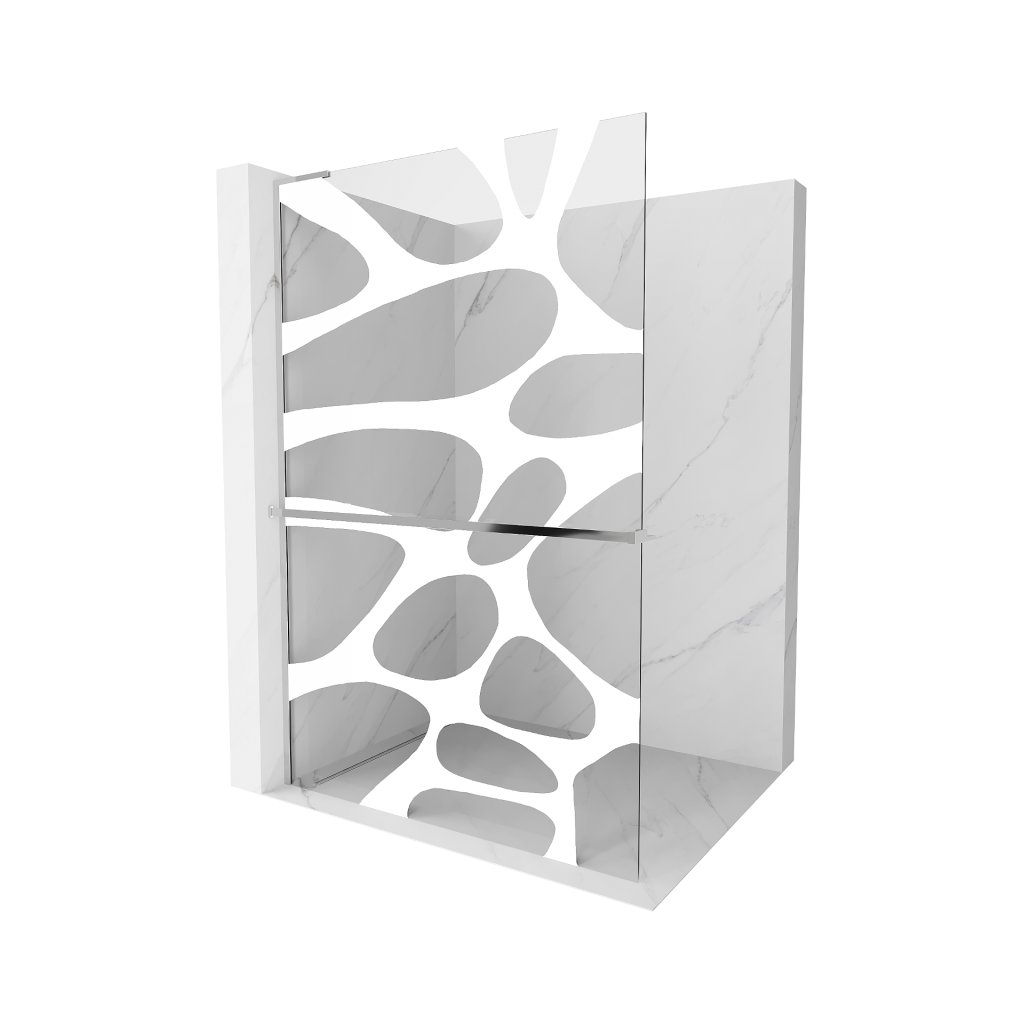 Mexen Kioto+ L, sprchová zástěna Walk-In s poličkou a věšákem 110 x 200 cm, 8mm čiré sklo bílý vzor, chromový profil, 800-110-123-01-97