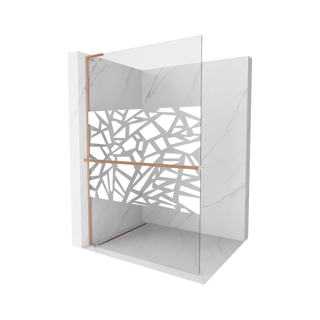 Mexen Kioto+ L, sprchová zástěna Walk-In s poličkou a věšákem 110 x 200 cm, 8mm čiré sklo bílý vzor, měděný matný profil, 800-110-123-65-85