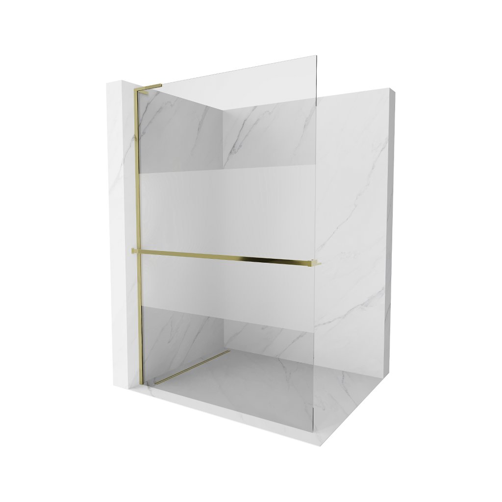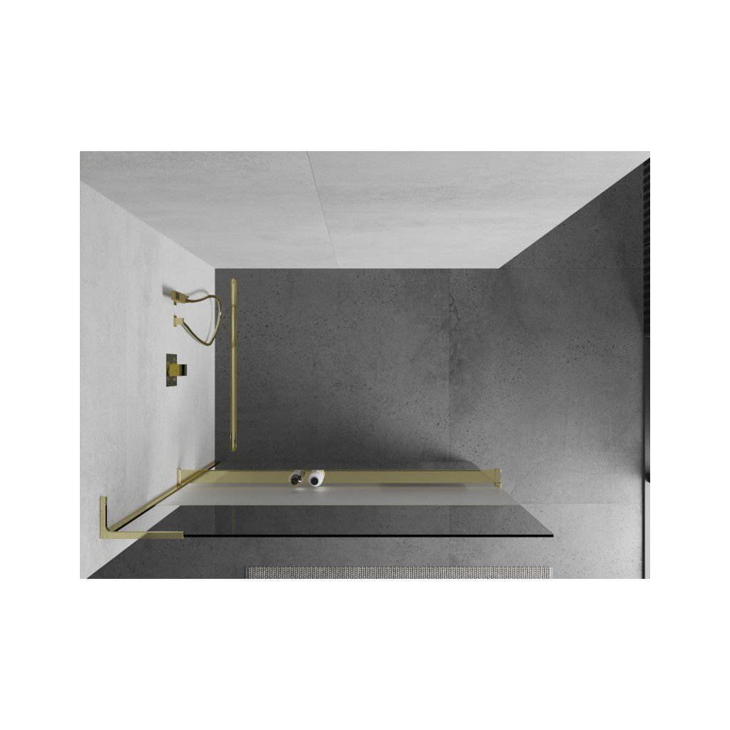 Mexen Kioto+ L, sprchová zástěna Walk-In s poličkou a věšákem 120 x 200 cm, 8mm čiré sklo-námraza, zlatý lesklý profil, 800-120-123-50-35