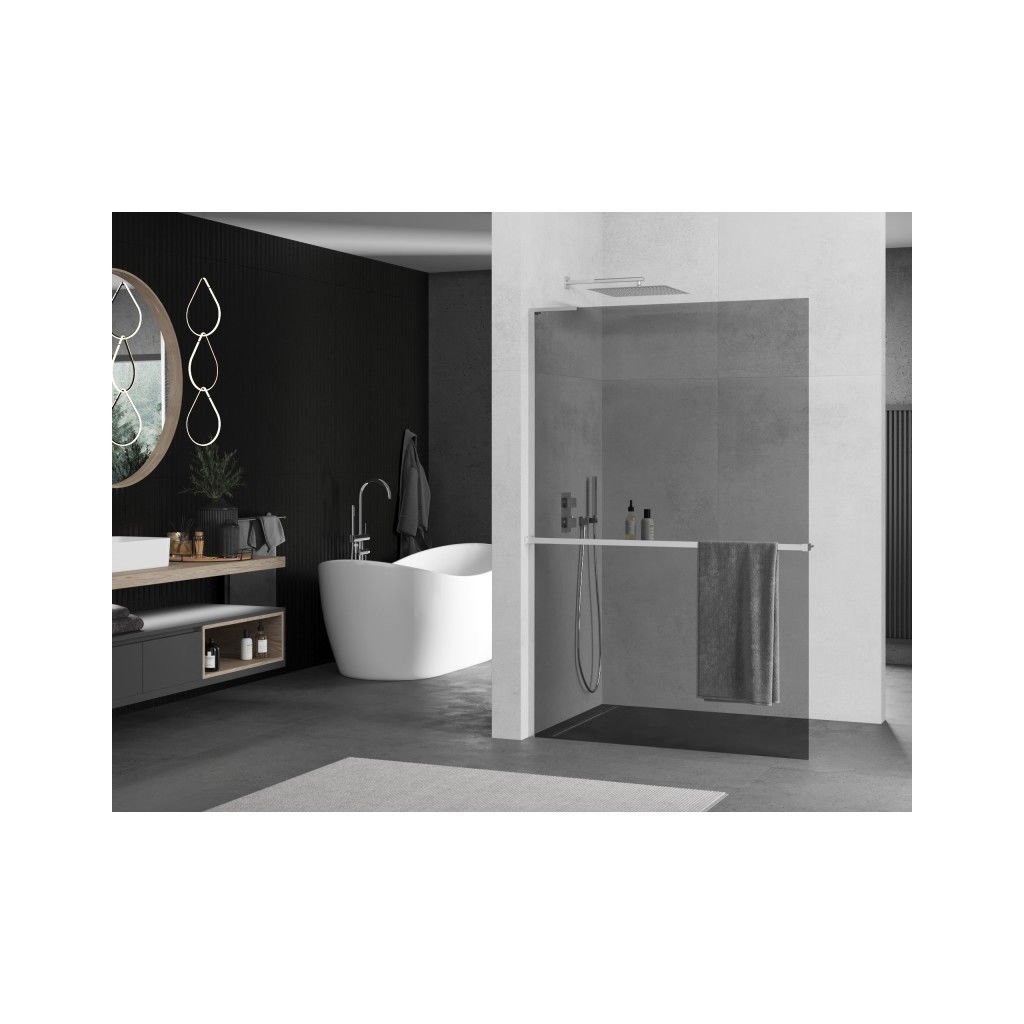 Mexen Kioto+ L, sprchová zástěna Walk-In s poličkou a věšákem 120 x 200 cm, 8mm šedé sklo, chromový profil, 800-120-123-01-40
