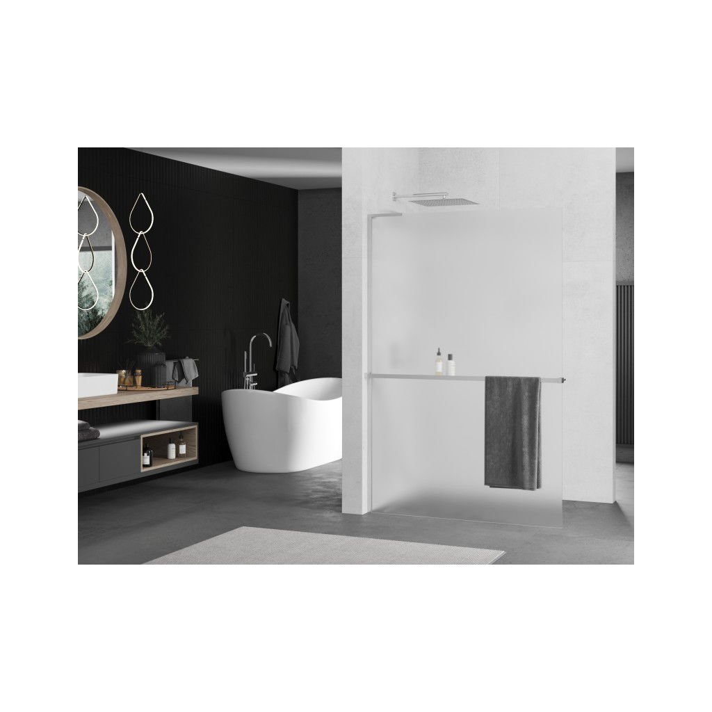 Mexen Kioto+ L, sprchová zástěna Walk-In s poličkou a věšákem 120 x 200 cm, 8mm sklo námraza, chromový profil, 800-120-123-01-30