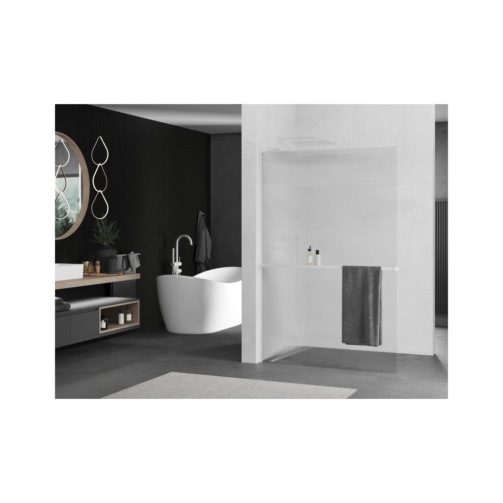 Mexen Kioto+ L, sprchová zástěna Walk-In s poličkou a věšákem 120 x 200 cm, 8mm sklo s žebrovým vzorem, bílý profil, 800-120-123-20-09