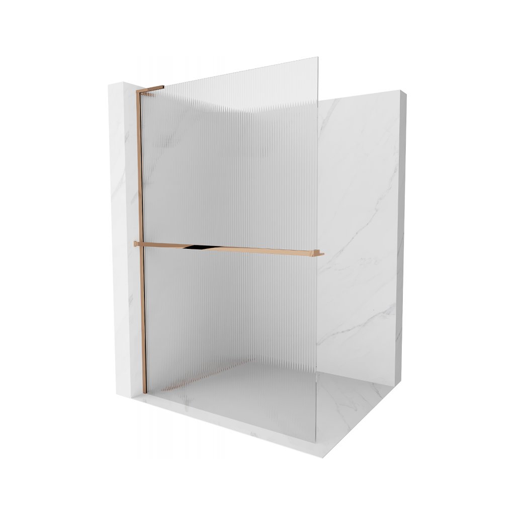 Mexen Kioto+ L, sprchová zástěna Walk-In s poličkou a věšákem 120 x 200 cm, 8mm sklo s žebrovým vzorem, růžové zlato profil, 800-120-123-60-09