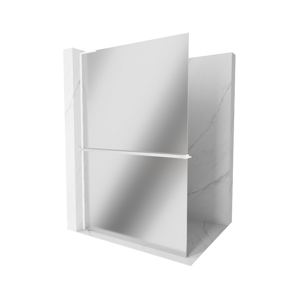 Mexen Kioto+ L, sprchová zástěna Walk-In s poličkou a věšákem 120 x 200 cm, 8mm sklo vzor zrcadlo, bílý profil, 800-120-123-20-50