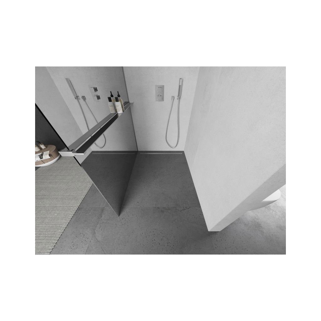 Mexen Kioto+ L, sprchová zástěna Walk-In s poličkou a věšákem 120 x 200 cm, 8mm sklo vzor zrcadlo, chromový profil, 800-120-123-01-50