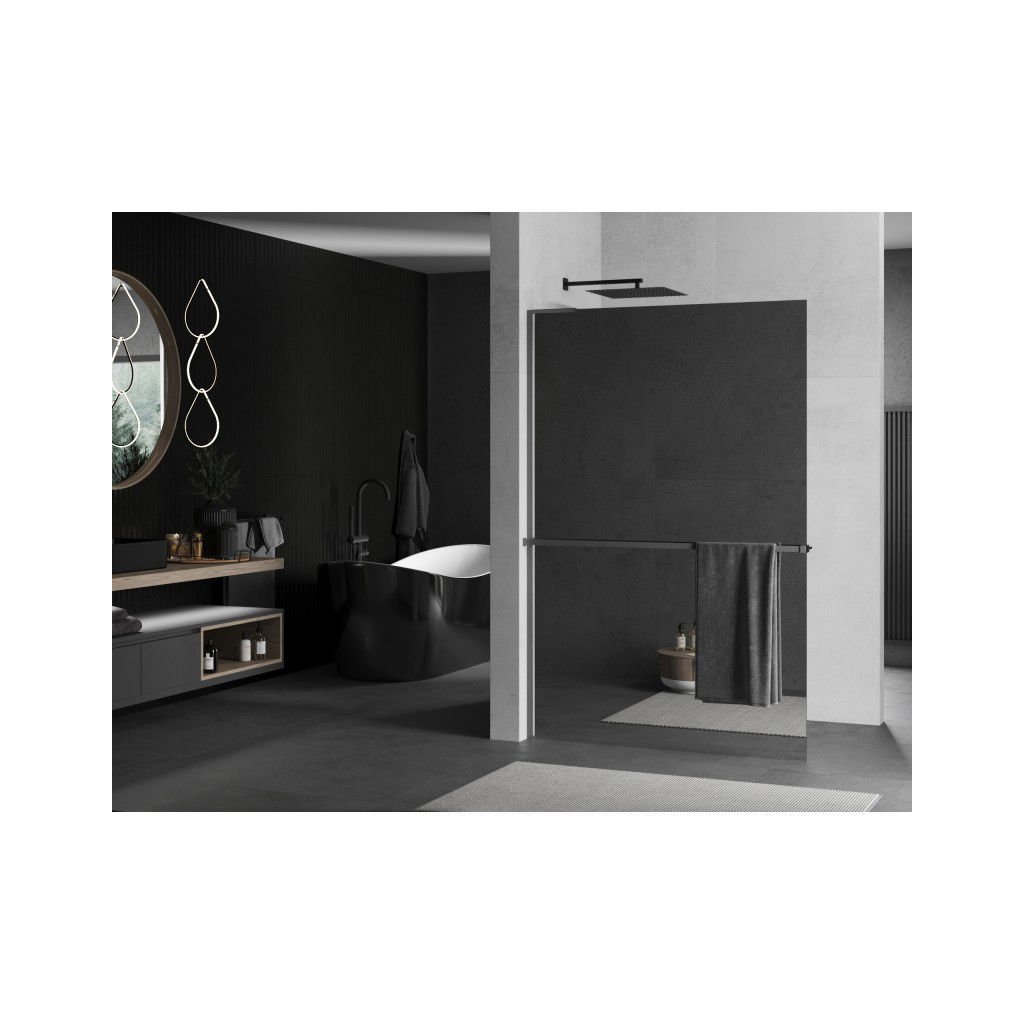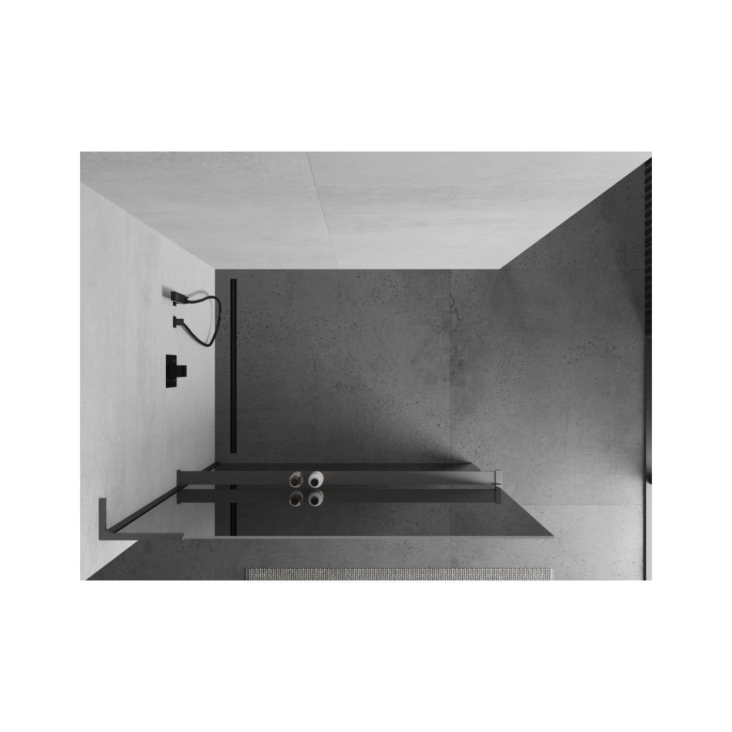 Mexen Kioto+ L, sprchová zástěna Walk-In s poličkou a věšákem 120 x 200 cm, 8mm sklo vzor zrcadlo, grafitový profil, 800-120-123-95-50