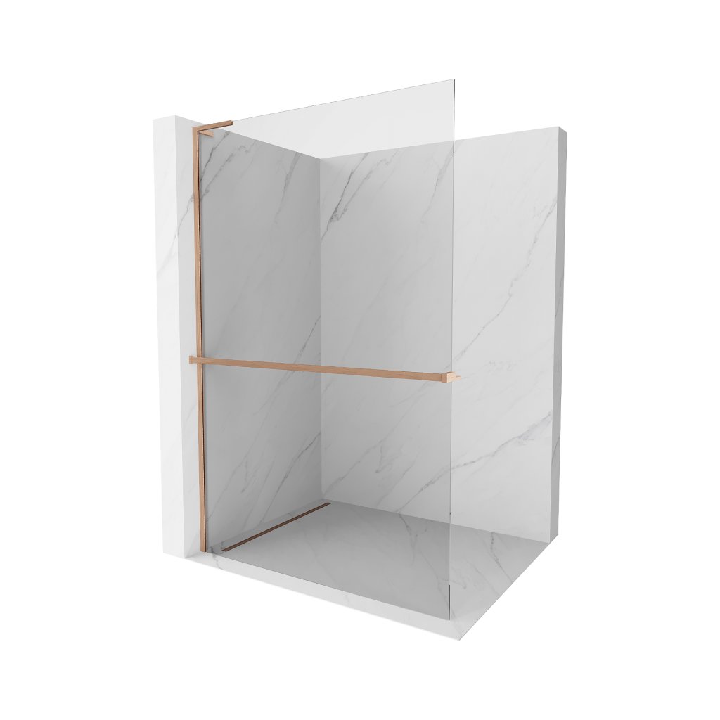 Mexen Kioto+ L, sprchová zástěna Walk-In s poličkou a věšákem 55 x 200 cm, 8mm čiré sklo, měděný matný profil, 800-055-123-65-00