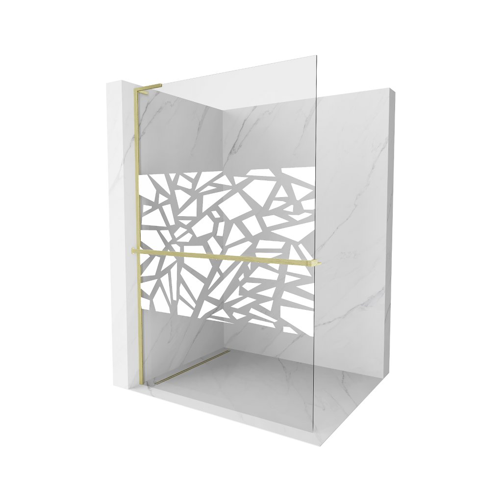 Mexen Kioto+ L, sprchová zástěna Walk-In s poličkou a věšákem 70 x 200 cm, 8mm čiré sklo bílý vzor, zlatý matný profil, 800-070-123-55-85