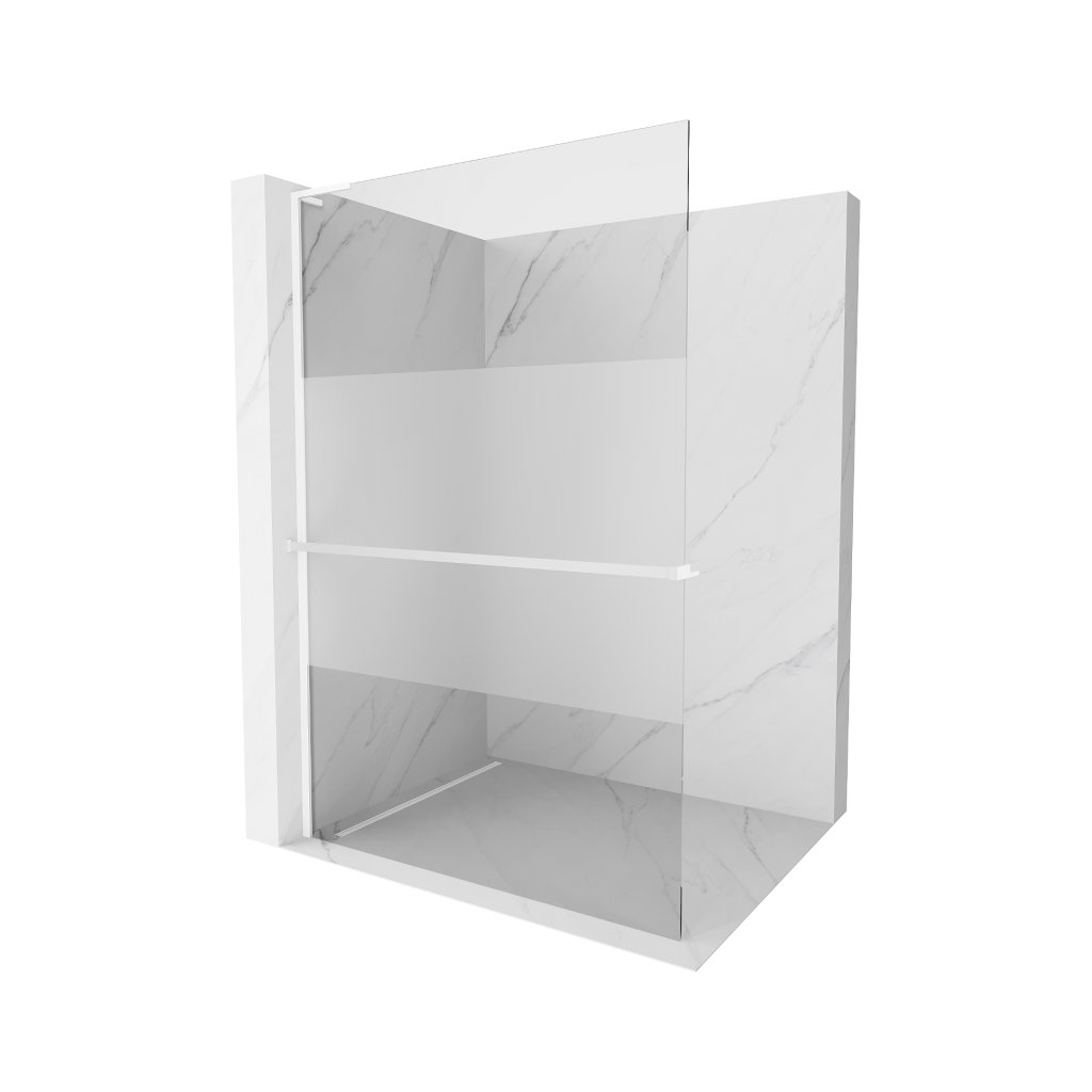 Mexen Kioto+ L, sprchová zástěna Walk-In s poličkou a věšákem 70 x 200 cm, 8mm čiré sklo-námraza, bílý profil, 800-070-123-20-35