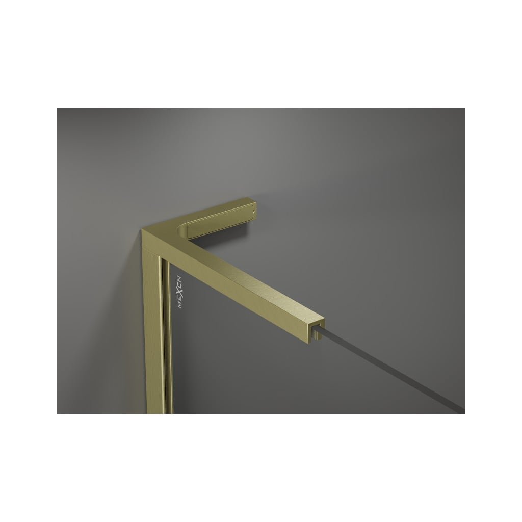 Mexen Kioto+ L, sprchová zástěna Walk-In s poličkou a věšákem 70 x 200 cm, 8mm sklo vzor zrcadlo, zlatý matný profil, 800-070-123-55-50