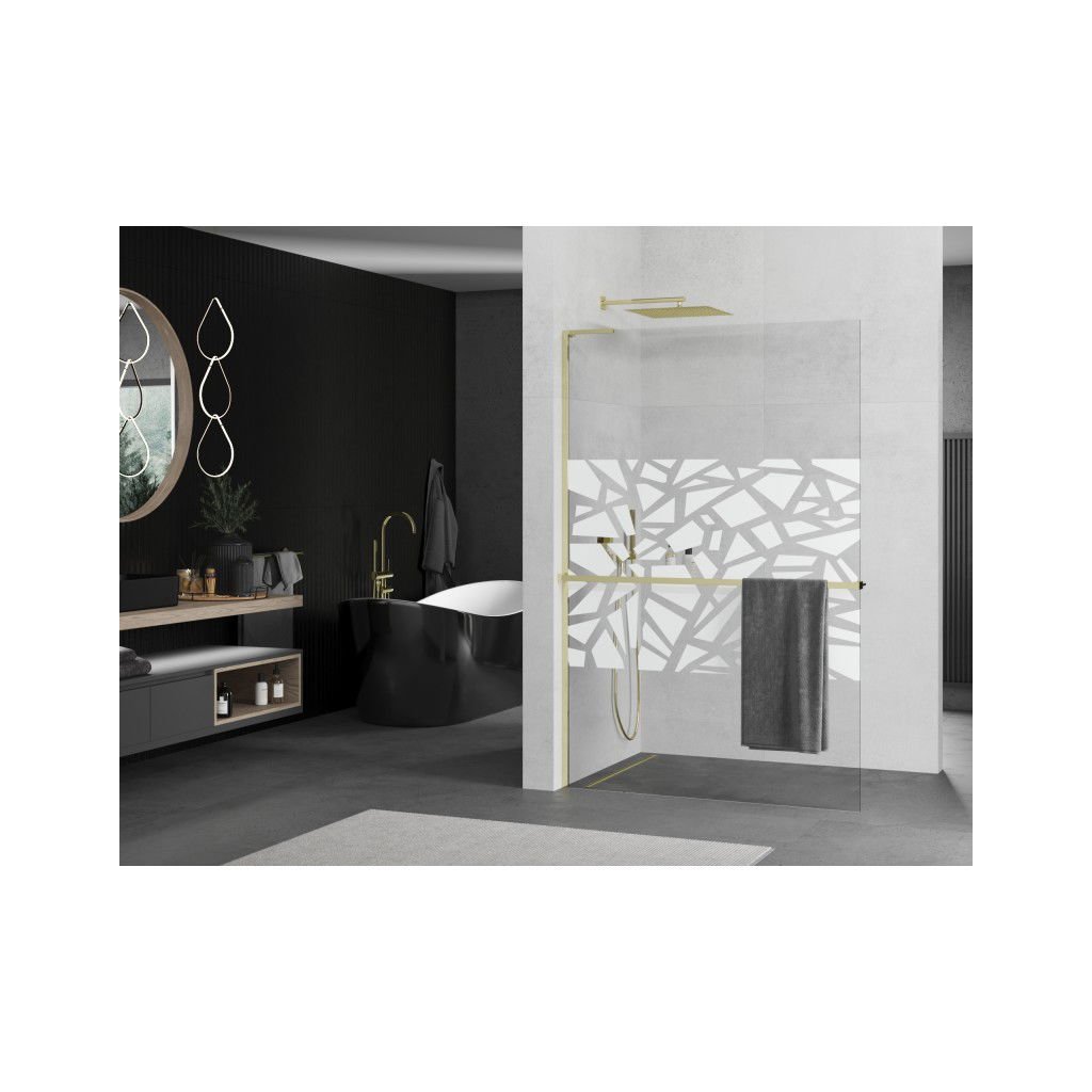 Mexen Kioto+ L, sprchová zástěna Walk-In s poličkou a věšákem 80 x 200 cm, 8mm čiré sklo bílý vzor, zlatý lesklý profil, 800-080-123-50-85