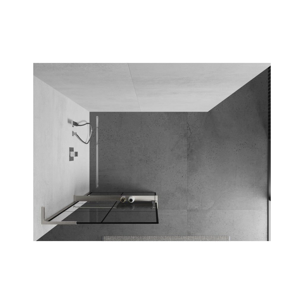 Mexen Kioto+ L, sprchová zástěna Walk-In s poličkou a věšákem 80 x 200 cm, 8mm čiré sklo černý vzor, broušená ocel profil, 800-080-123-97-77