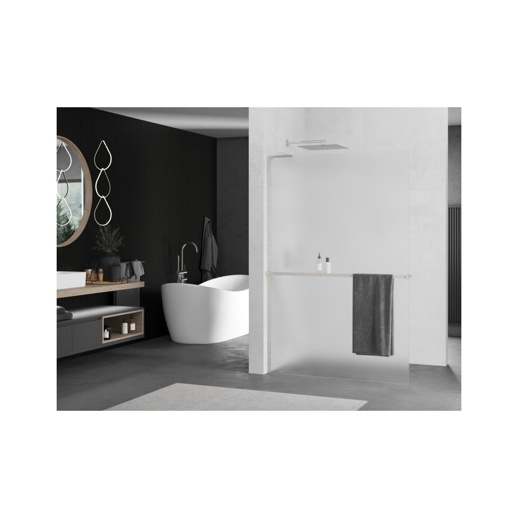Mexen Kioto+ L, sprchová zástěna Walk-In s poličkou a věšákem 80 x 200 cm, 8mm sklo námraza, broušená ocel profil, 800-080-123-97-30