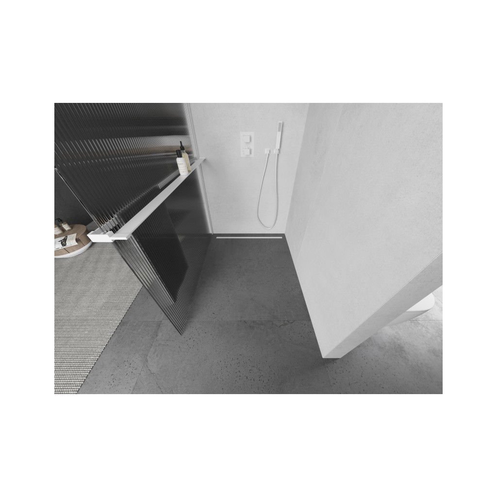 Mexen Kioto+ L, sprchová zástěna Walk-In s poličkou a věšákem 80 x 200 cm, 8mm sklo s žebrovým vzorem, bílý profil, 800-080-123-20-09