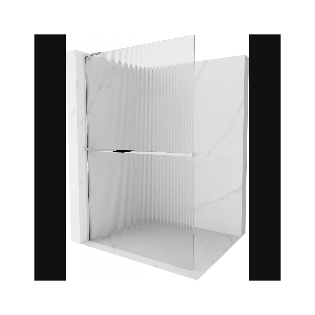 Mexen Kioto+ L, sprchová zástěna Walk-In s poličkou a věšákem 80 x 200 cm, 8mm sklo s žebrovým vzorem, chromový profil, 800-080-123-01-09