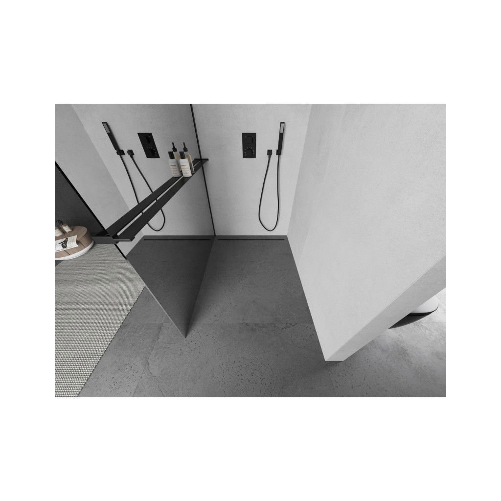 Mexen Kioto+ L, sprchová zástěna Walk-In s poličkou a věšákem 80 x 200 cm, 8mm sklo vzor zrcadlo, černý profil, 800-080-123-70-50