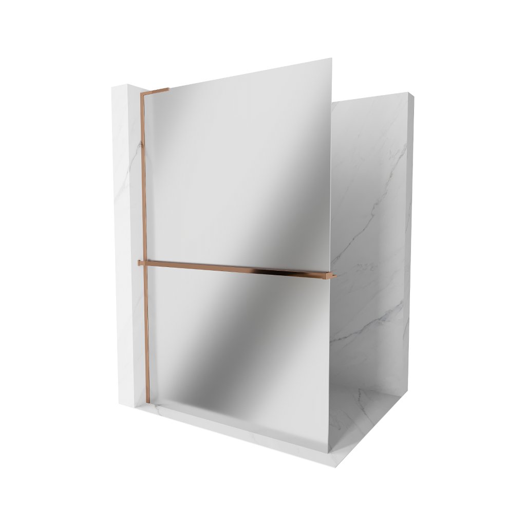 Mexen Kioto+ L, sprchová zástěna Walk-In s poličkou a věšákem 80 x 200 cm, 8mm sklo vzor zrcadlo, růžové zlato profil, 800-080-123-60-50