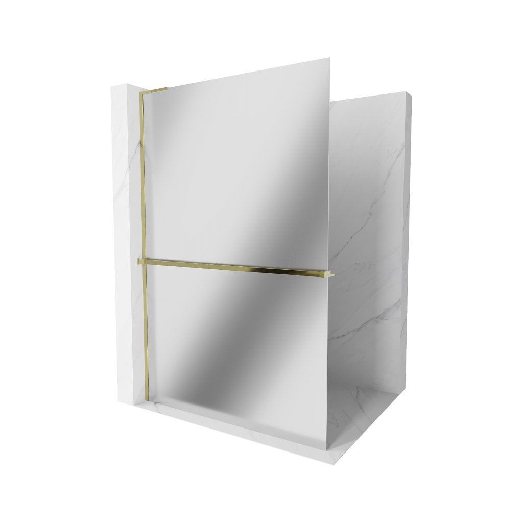 Mexen Kioto+ L, sprchová zástěna Walk-In s poličkou a věšákem 80 x 200 cm, 8mm sklo vzor zrcadlo, zlatý lesklý profil, 800-080-123-50-50