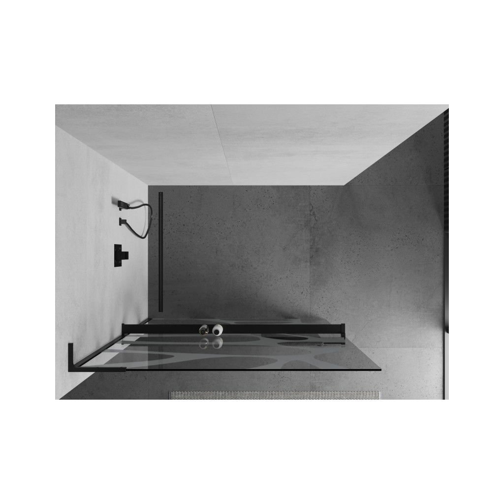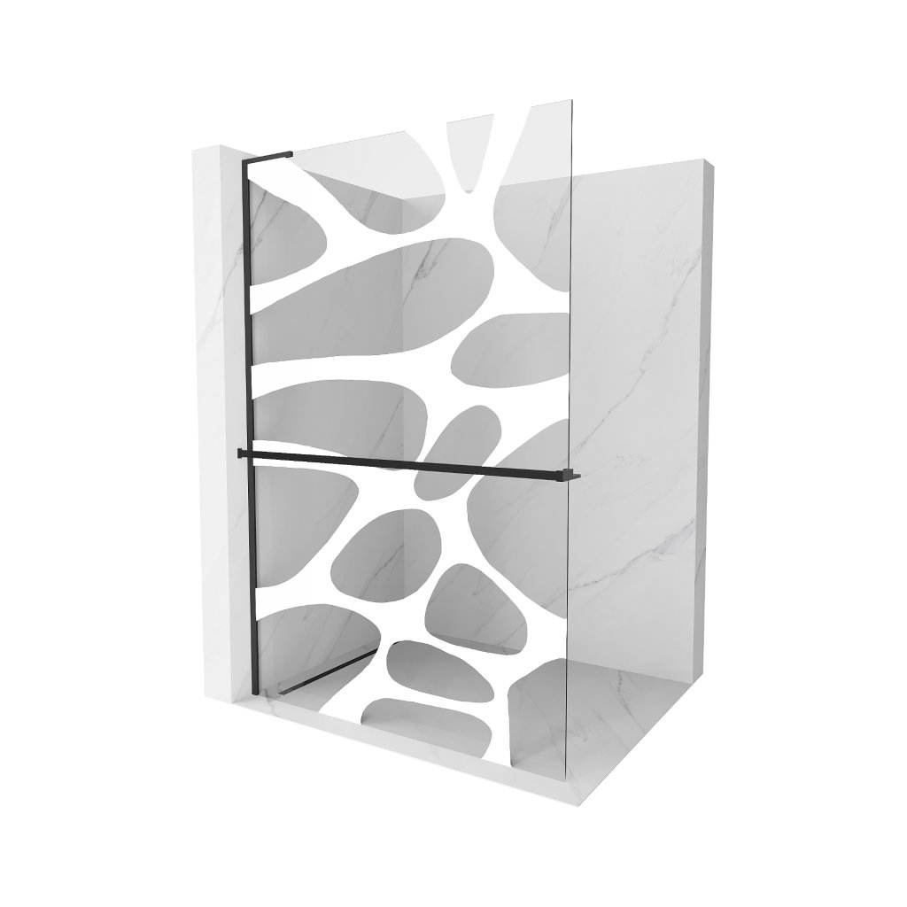 Mexen Kioto+ L, sprchová zástěna Walk-In s poličkou a věšákem 90 x 200 cm, 8mm čiré sklo bílý vzor, černý profil, 800-090-123-70-97