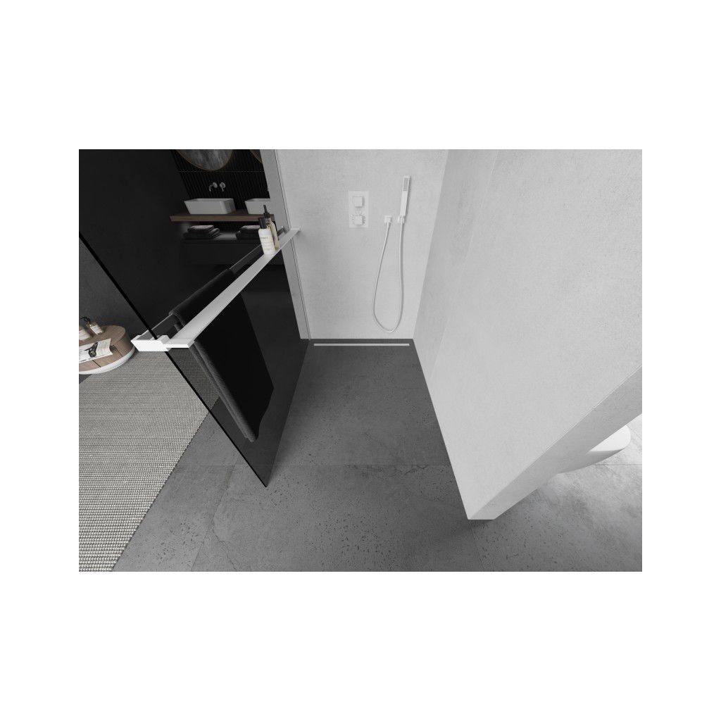 Mexen Kioto+ L, sprchová zástěna Walk-In s poličkou a věšákem 90 x 200 cm, 8mm šedé sklo, bílý profil, 800-090-123-20-40