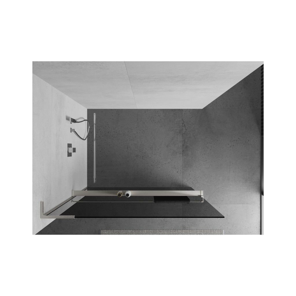 Mexen Kioto+ L, sprchová zástěna Walk-In s poličkou a věšákem 90 x 200 cm, 8mm šedé sklo, broušená ocel profil, 800-090-123-97-40