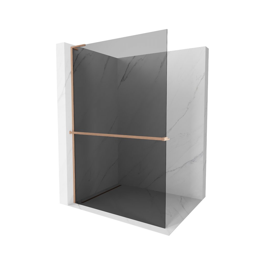Mexen Kioto+ L, sprchová zástěna Walk-In s poličkou a věšákem 90 x 200 cm, 8mm šedé sklo, měděný matný profil, 800-090-123-65-40