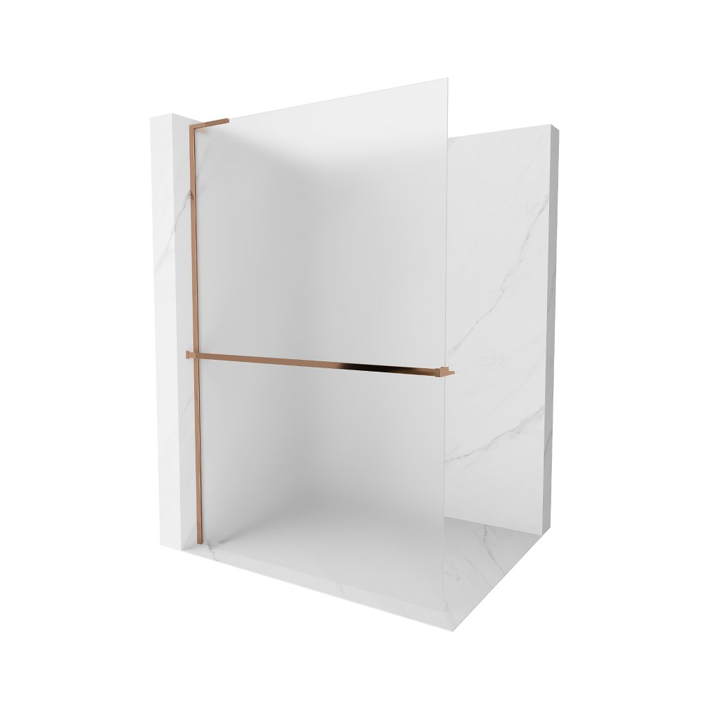 Mexen Kioto+ L, sprchová zástěna Walk-In s poličkou a věšákem 90 x 200 cm, 8mm sklo námraza, růžové zlato profil, 800-090-123-60-30