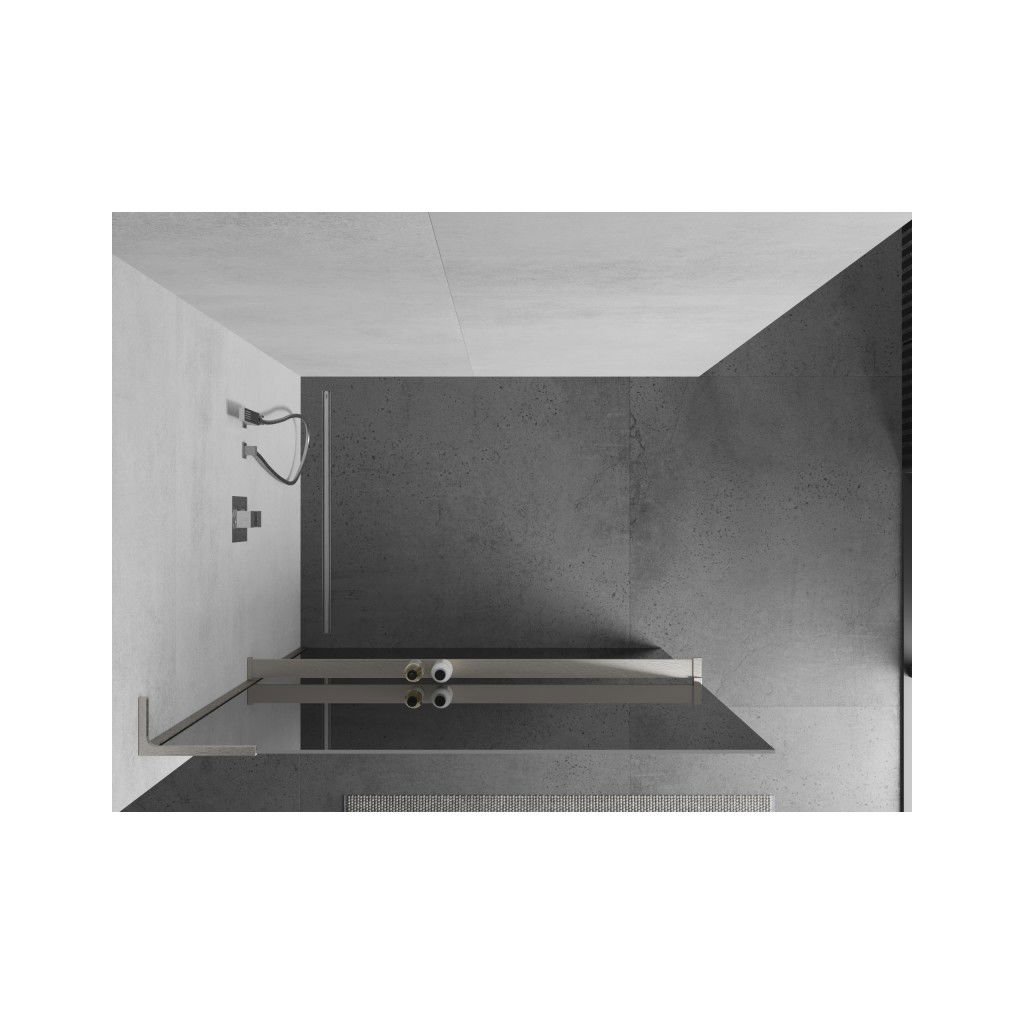 Mexen Kioto+ L, sprchová zástěna Walk-In s poličkou a věšákem 90 x 200 cm, 8mm sklo vzor zrcadlo, broušená ocel profil, 800-090-123-97-50