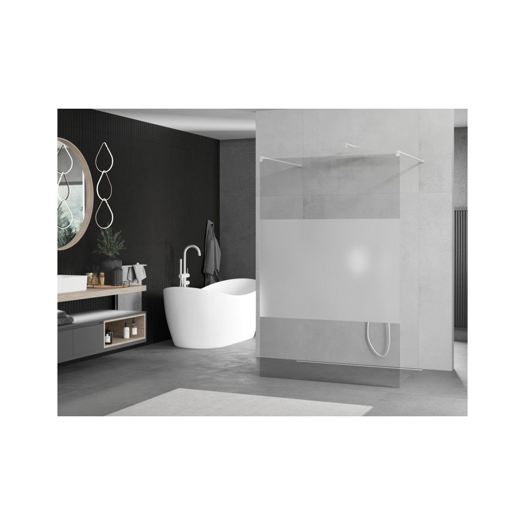 Mexen Kioto, průchozí sprchová zástěna 100 x 200 cm, 8mm čiré sklo/námraza, 2x bílá stabilizační rozpěra, 800-100-002-20-35