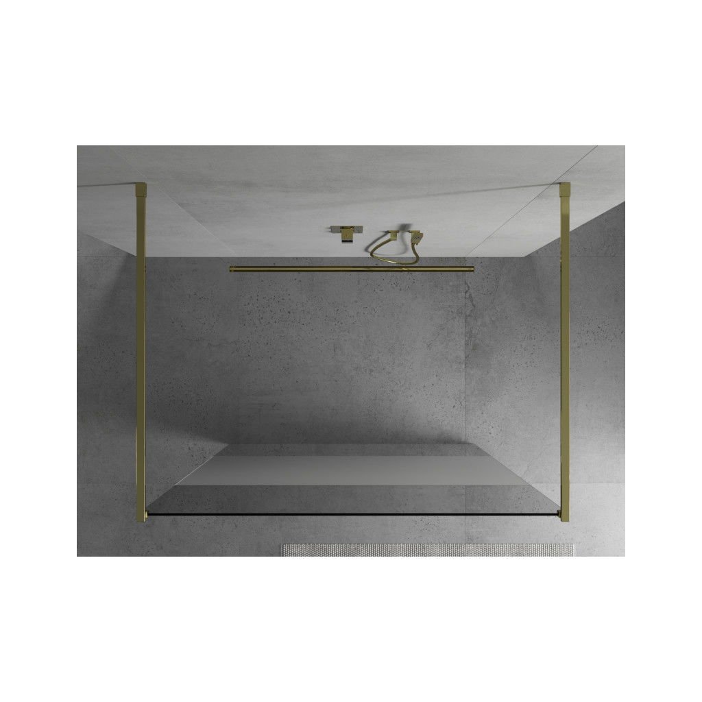 Mexen Kioto, průchozí sprchová zástěna 100 x 200 cm, 8mm čiré sklo/námraza, 2x zlatá stabilizační rozpěra, 800-100-002-50-35