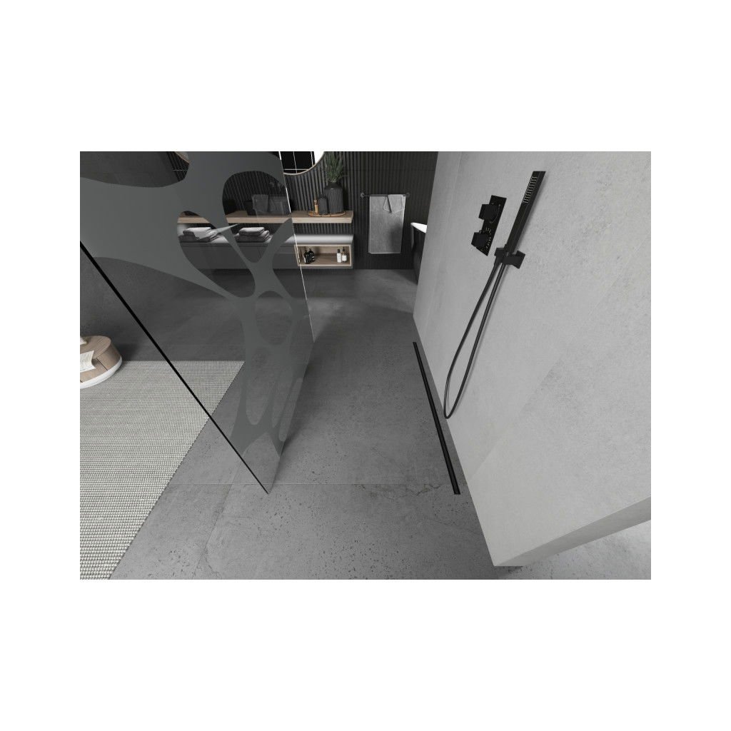 Mexen Kioto, průchozí sprchová zástěna 100 x 200 cm, 8mm sklo čiré/bílý vzor, 2x černá stabilizační rozpěra, 800-100-002-70-97