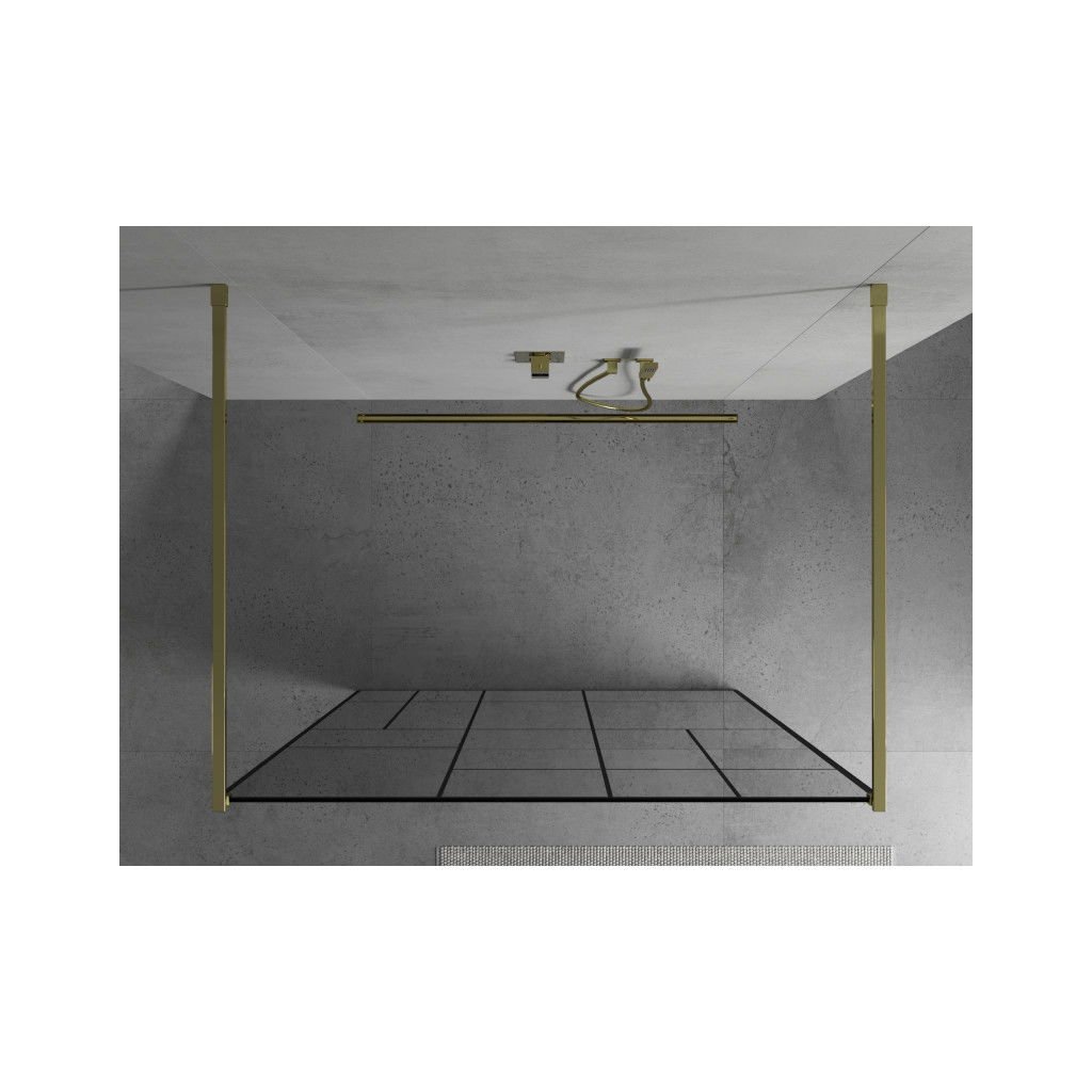Mexen Kioto, průchozí sprchová zástěna 100 x 200 cm, 8mm sklo čiré/černý vzor, 2x zlatá stabilizační rozpěra, 800-100-002-50-78