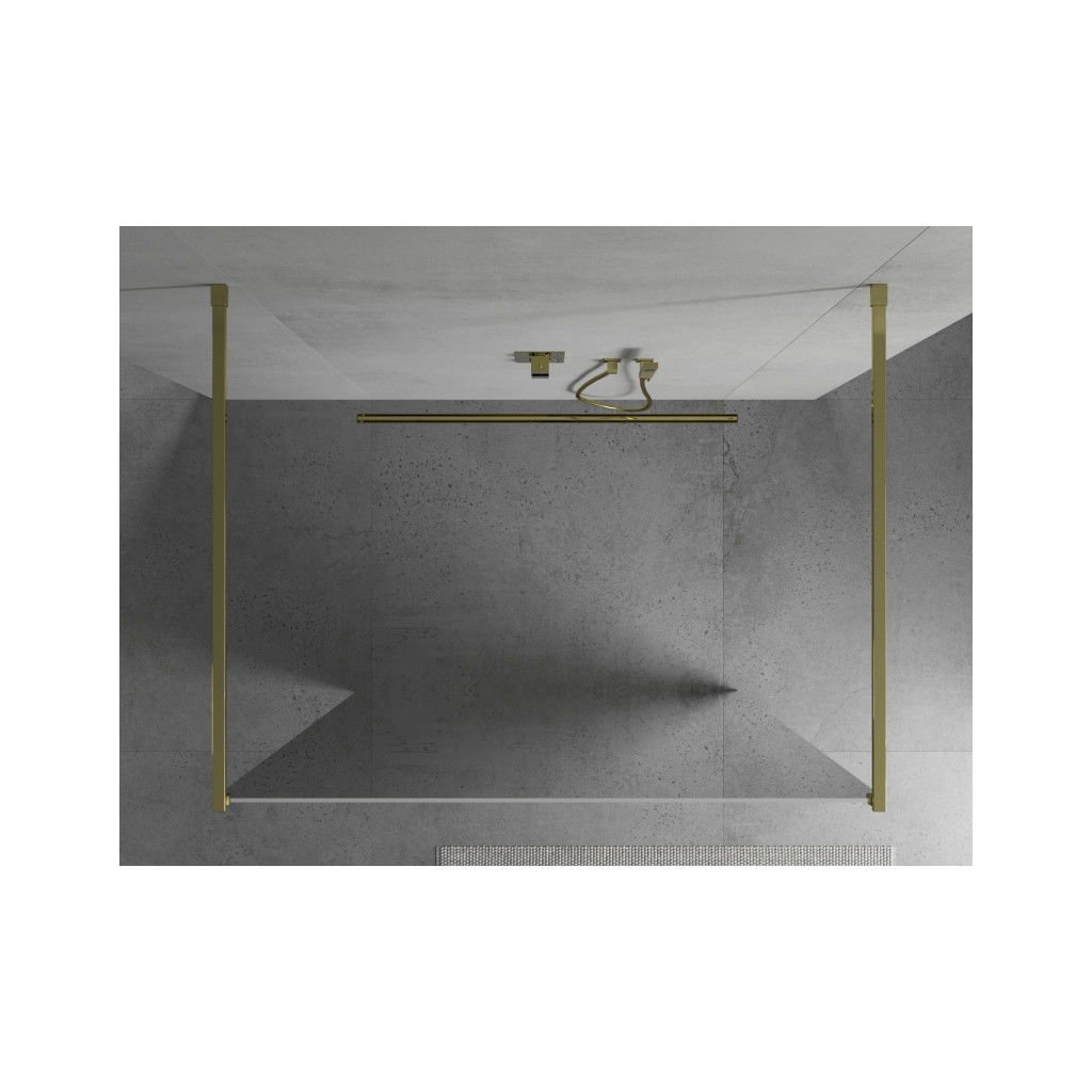 Mexen Kioto, průchozí sprchová zástěna 100 x 200 cm, 8mm sklo vzor zrcadlo, 2x zlatá stabilizační rozpěra, 800-100-002-50-50